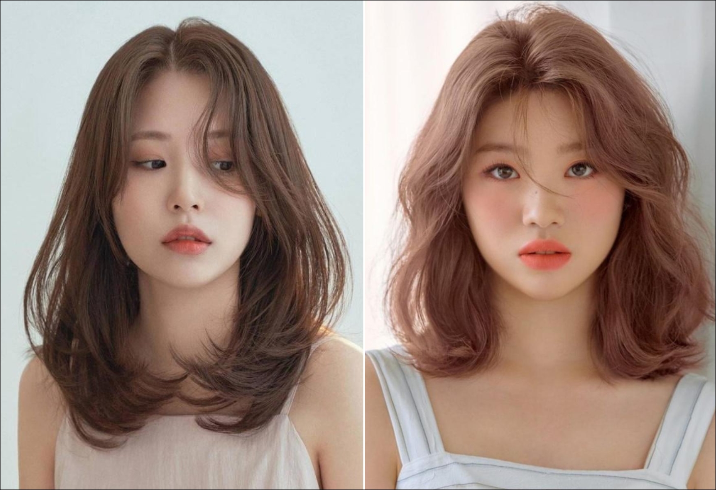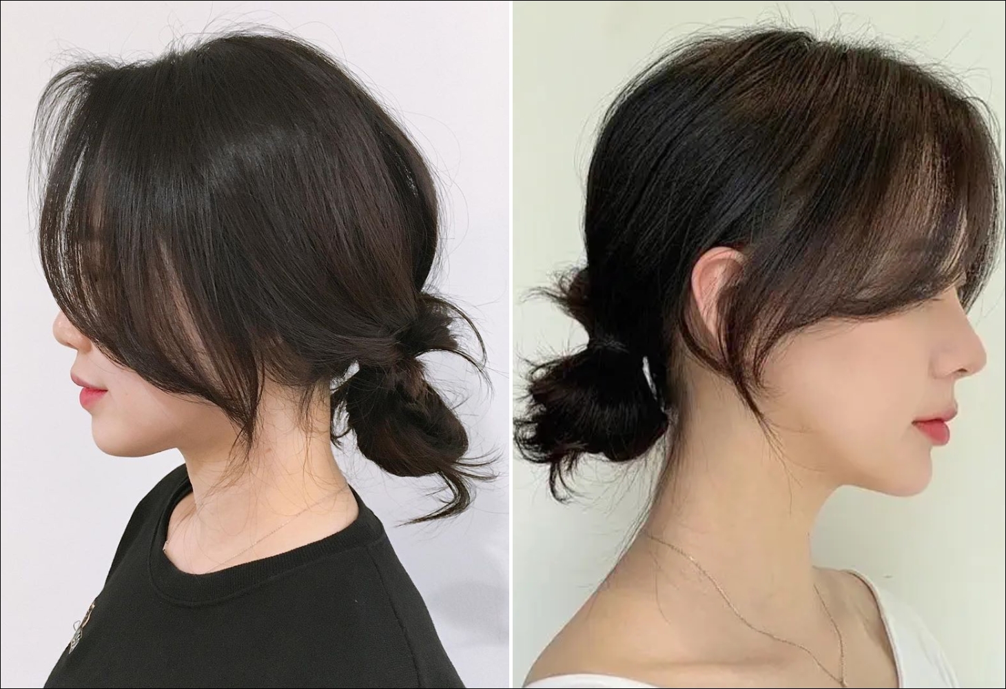 This Korean-inspired style is elegant and sophisticated, perfect for offices or parties. The low bun highlights the neck, while wispy bangs add softness and grace.