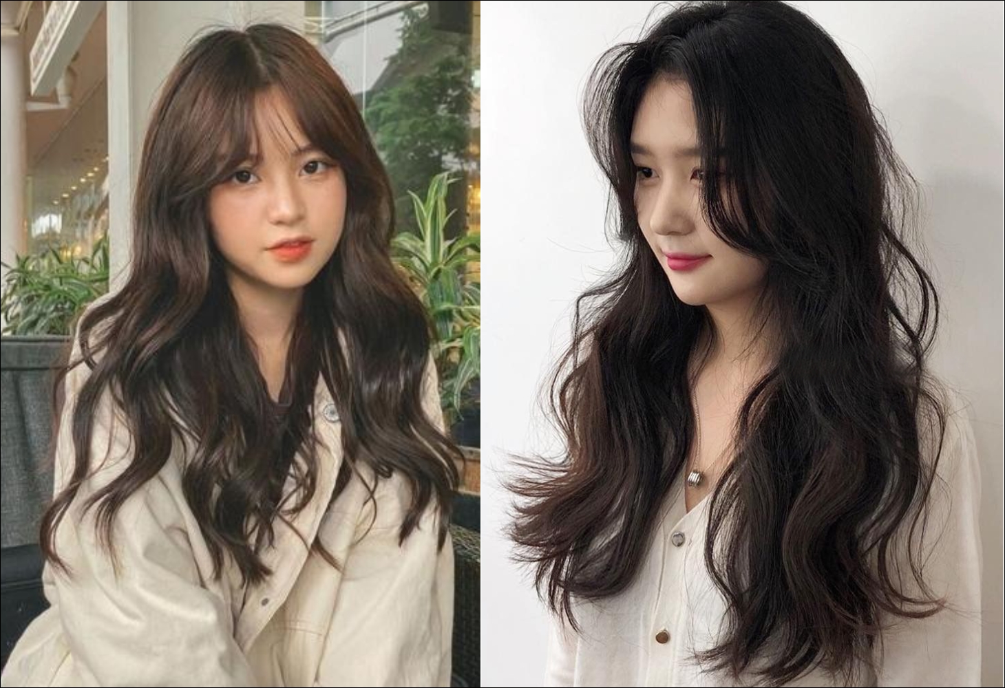 This style is perfect for those who love a gentle look, with loose, natural waves. Combined with wispy bangs, it softens the face and adds natural volume.