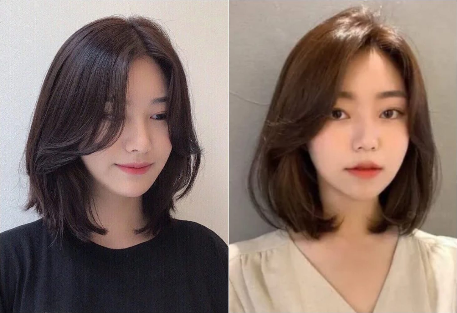 This style, typically chin-length (Bob) or shoulder-length (Lob), features ends curled inward in a C-shape, framing the face. Combined with wispy bangs, it subtly conceals angular jawlines, creating a youthful, neat look.