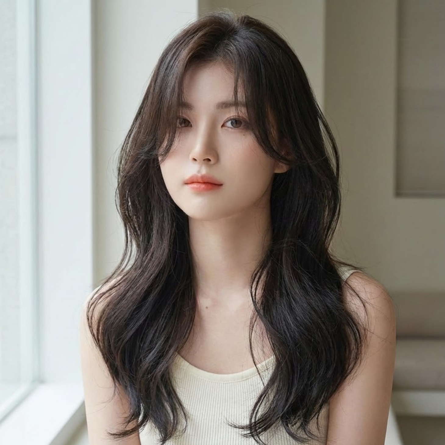 Korean Layered Wispy Bangs with natural, loose layers.