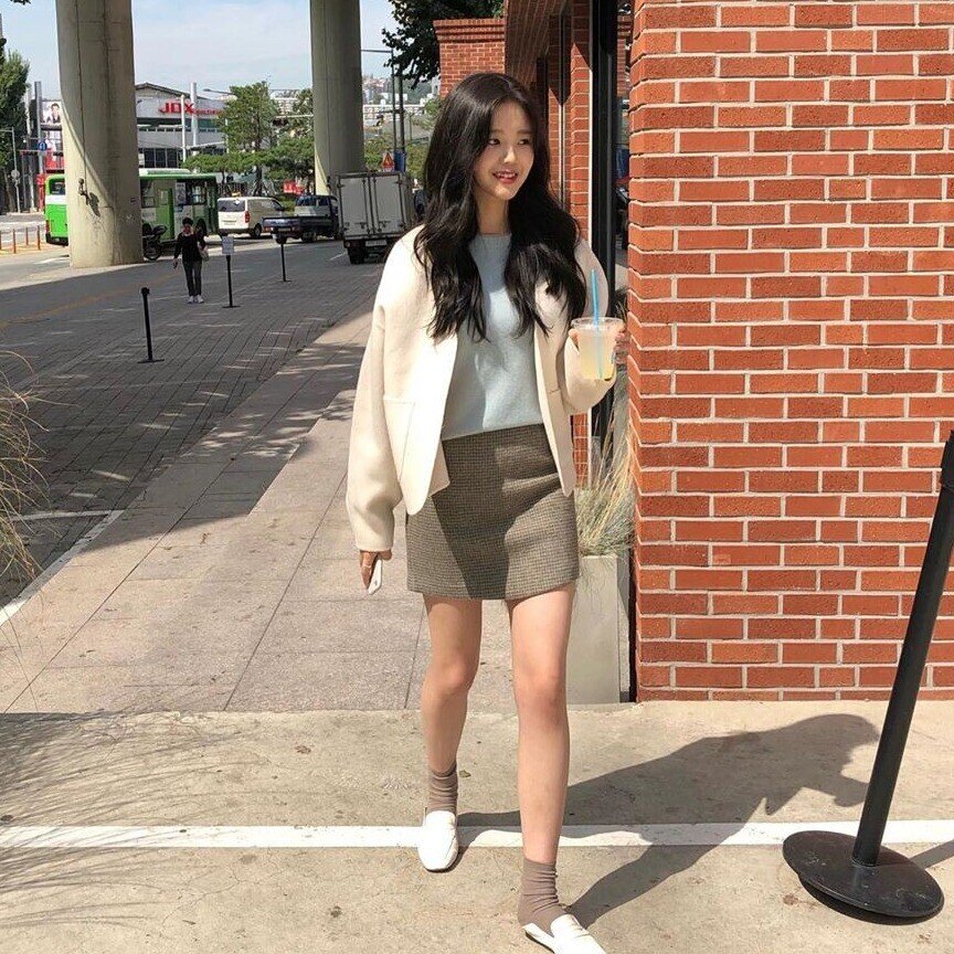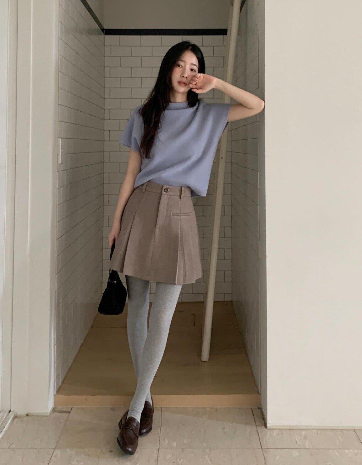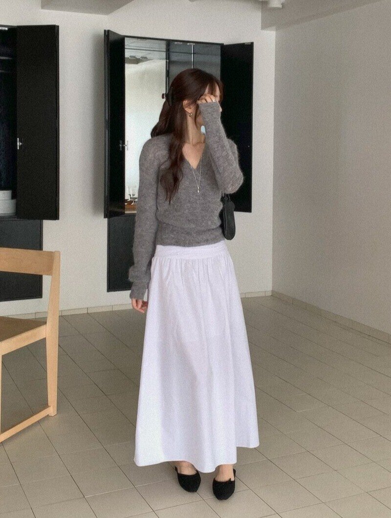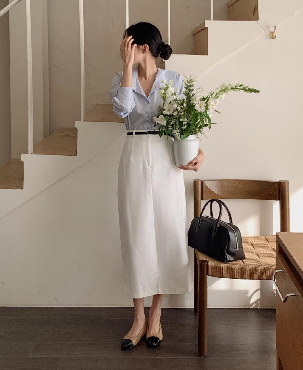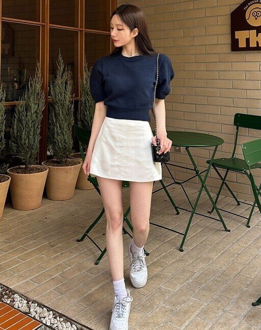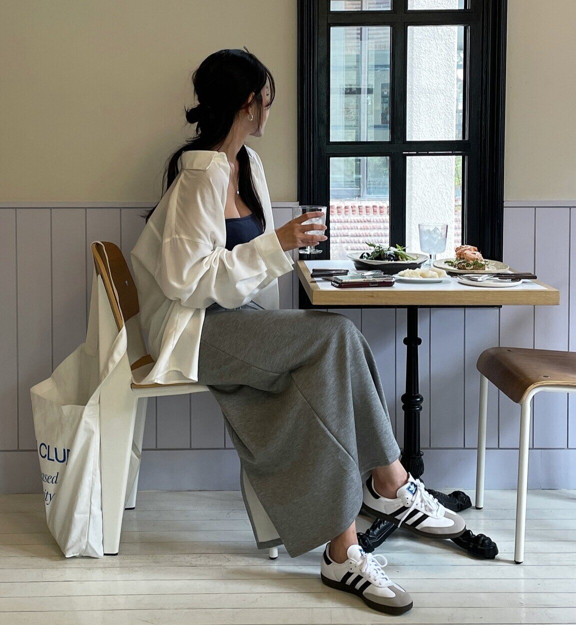 This combination is a go-to for many in daily life. Pairing white sneakers with A-line, midi, or pleated skirts creates a neat and approachable look.