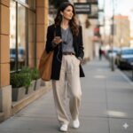 Opt for an oversized blazer with straight-leg jeans for a dynamic edge, or choose neutral tones like beige, gray, or brown for understated refinement. A crisp white tee, classic blue jeans, and white sneakers form a fail-safe trio for hectic days. Elevate the ensemble with heels or leather loafers for a touch of femininity—a subtle shift that redefines your silhouette.