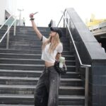 Even in an all-black ensemble, Han Ji Hye radiates youthful energy. A fitted t-shirt paired with a long skirt creates a feminine silhouette, while ballet flats add a soft, graceful touch. This ensemble proves that minimalism can achieve enduring appeal.