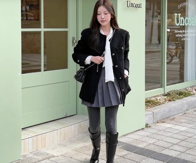 In conclusion, apart from the classic black tights, Korean fashionistas are embracing gray, ash, and white tights this winter. Besides providing warmth, these colored tights add unique touches to your outfits, making you look youthful and stylish. Experiment with these new shades and skillfully combine them to create your signature winter fashion statement!