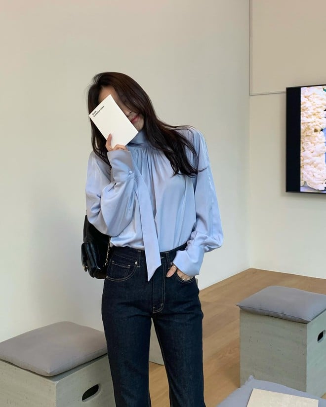 While pastel blue exudes sweetness, navy blue embodies sophistication and luxury. This versatile hue flatters all skin tones and suits every age group. Women in their 40s can incorporate navy blue into their work and casual wardrobes. Combining navy blue with denim or adding gold accessories will create a striking and captivating look.