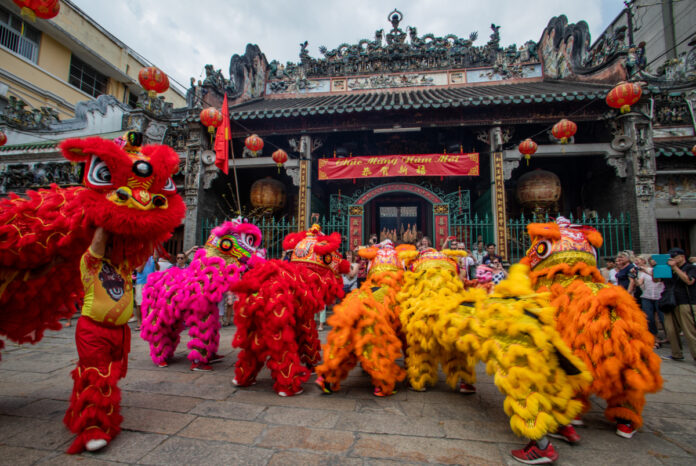 Every year, during the Lunar New Year celebrations, the temple attracts hundreds of lion and dragon dance troupes from Ho Chi Minh City and Binh Duong province, seeking blessings for a prosperous year ahead. This ritual is called “Khai Quang Diem Nhan.” Photo: Thanh Nguyen