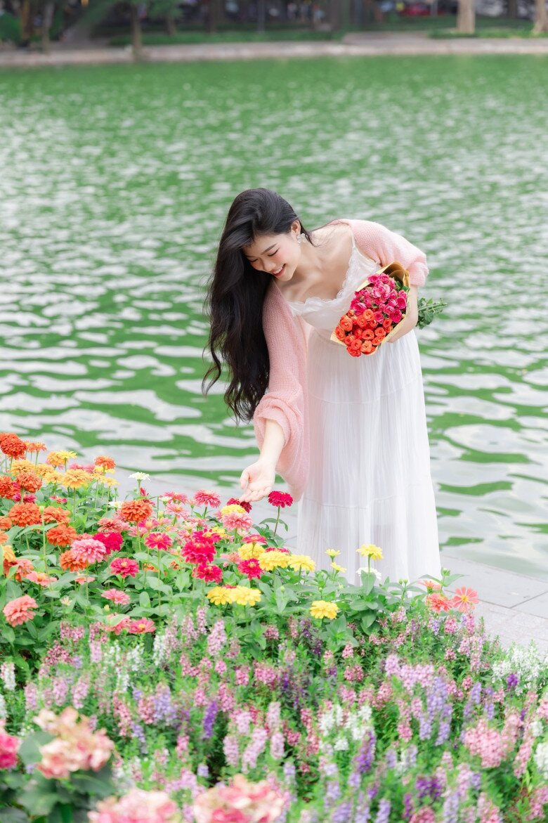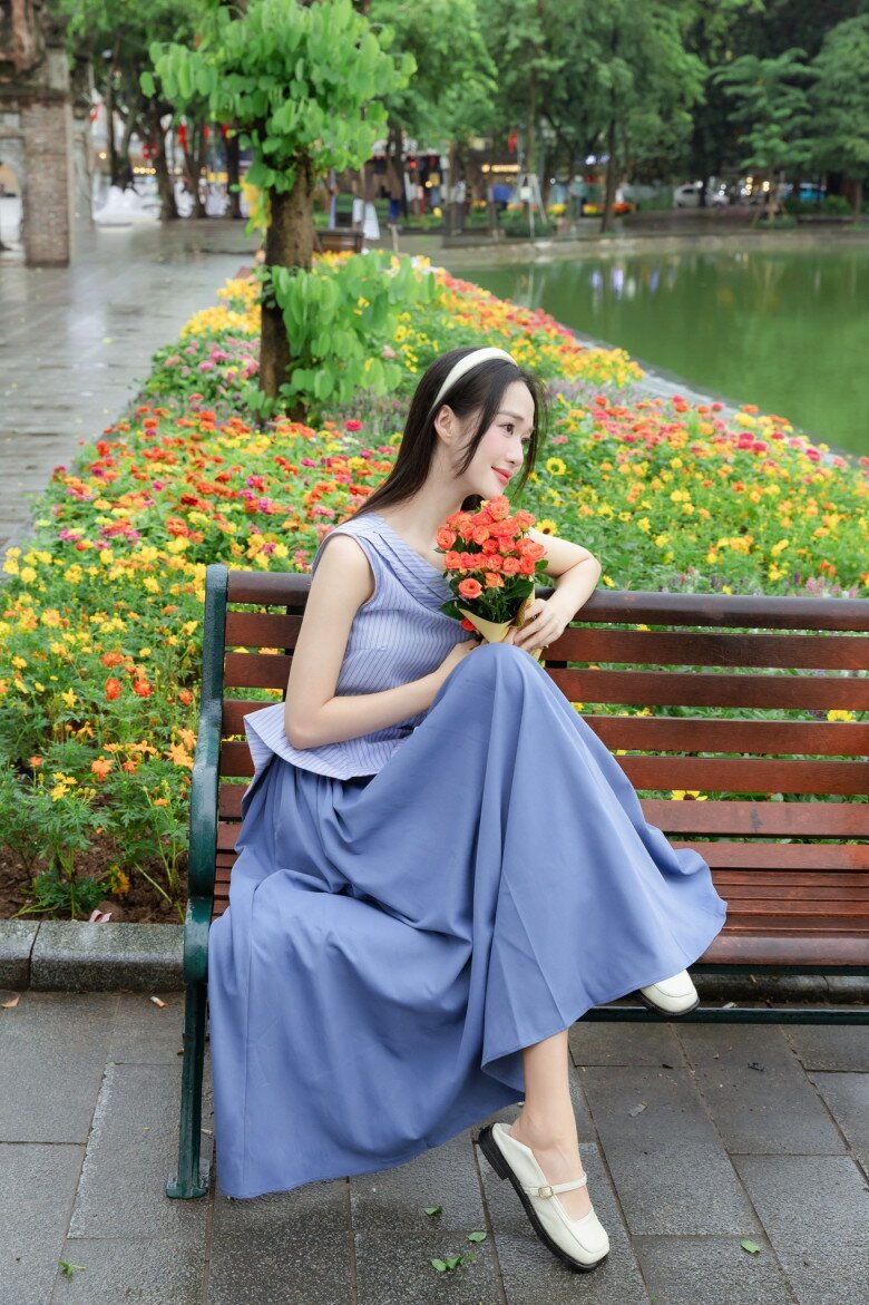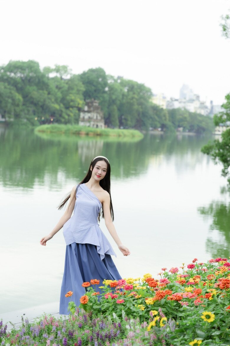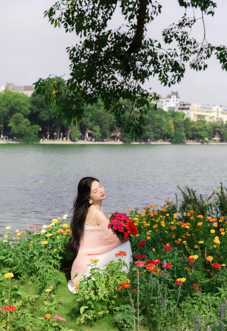 Following the National Day on September 2nd, the addition of more flowers has transformed the area into a fairytale-like studio in the heart of the city. Many young people arrived early in the morning to capture the soft golden sunlight, enjoying the fresh and less crowded atmosphere. The playful phrase “One square meter, ten muses” circulating on social media reflects the allure of the lake during these days. The combination of clear blue water and vibrant flower beds evokes a European ambiance right in the center of Hanoi.