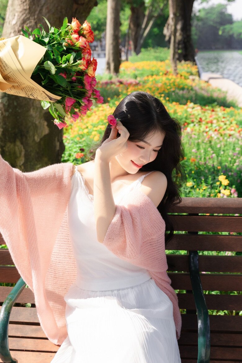 Beyond casual strolls, many young people invest effort into their photo shoots. They prepare “muse-like” outfits and bring professional cameras and reflectors for polished photos. However, some flowers, like hydrangeas, wilt quickly, raising concerns about their longevity. Despite this, by skillfully using light and accessories, the photos still achieve high quality, earning an 8/10 aesthetic rating.