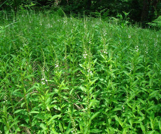 According to botanical records, Lysimachia fortunei Maxim, commonly known as “rau tinh tú,” belongs to the Primulaceae family. This perennial herb typically grows between 40 to 60 cm tall, featuring alternate or nearly opposite leaves with slender, elongated blades. One of its most distinctive traits is the cluster of white flowers forming a pyramidal shape at the top, standing out prominently against the foliage.