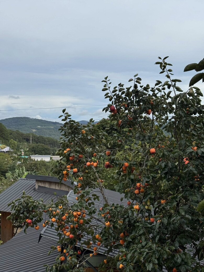Locals in Da Lat joke, “You can take hundreds of beautiful photos just by walking around your neighborhood.” And it’s true—during persimmon season, the entire city transforms into a natural film set. Stone steps, wooden slopes, and moss-covered fences all become perfect backdrops. The light during this season is also “lens-friendly”—not too harsh, just enough to highlight the orange-red persimmons against the clear sky.