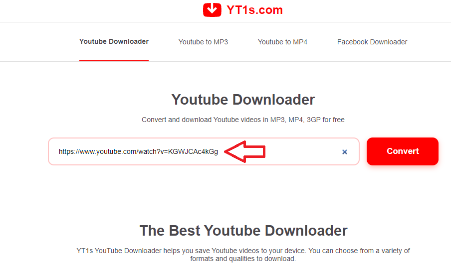 Step 2: Visit yt1s.com, paste the URL into the address bar, and click Convert to process the link.