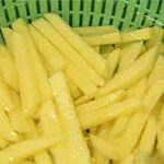 Start by peeling and washing the potatoes. Cut them into uniform, finger-sized sticks for easy eating and cooking. Immediately soak the potatoes in cold water, gently stirring to remove excess starch and prevent discoloration.