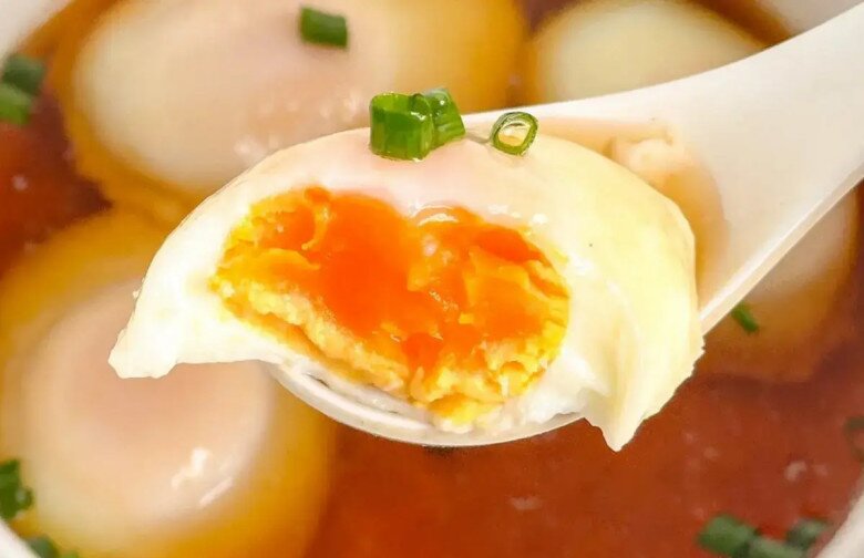Once the eggs are set, turn the heat to low and cook for 2–3 minutes until fully cooked, then remove them. Now, you’ll have perfectly round eggs with evenly wrapped whites, looking absolutely delicious.