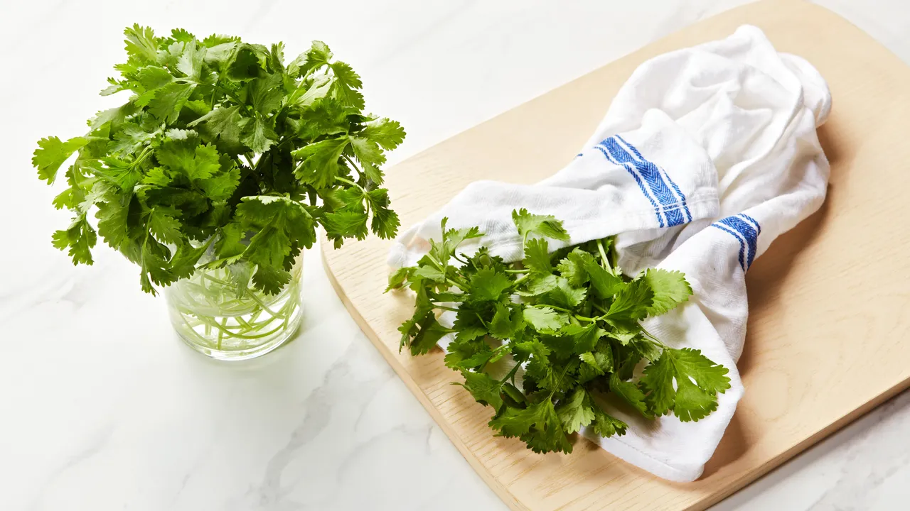 – After soaking, rinse the cilantro with clean water and allow it to dry completely. Gently pat it dry with paper towels if needed.