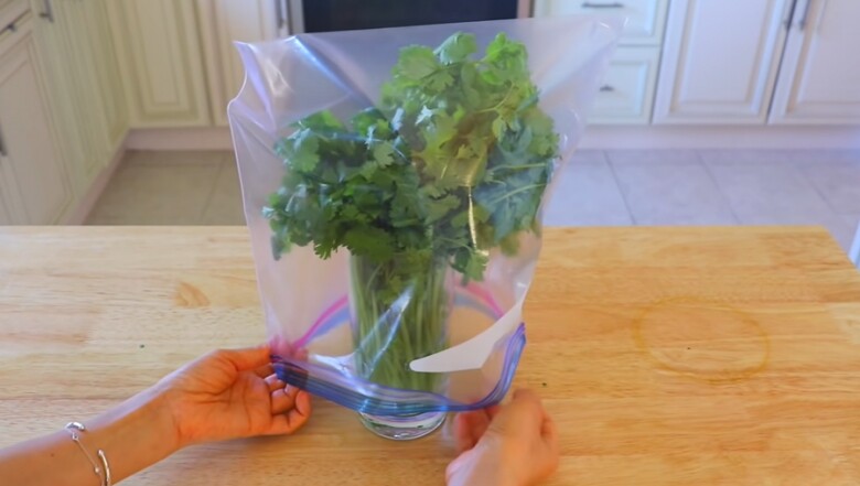Place the cleaned and dried cilantro into a large plastic bag, squeeze out the air, and seal tightly. Store the bag in the freezer. This method keeps the cilantro fresh for up to 3 months, maintaining its flavor and texture.