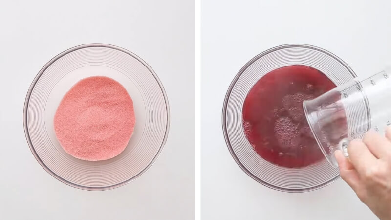 Place the dish in the fridge for at least 3 hours or overnight until the jelly is completely set. Test by gently pressing – the jelly should be springy and not stick to your finger.