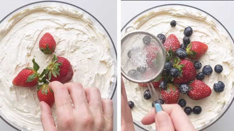 Once the jelly, custard, and cream layers are set and firm, decorate the Christmas Trifle with fresh strawberries, blueberries, or your favorite fruits for a vibrant look.