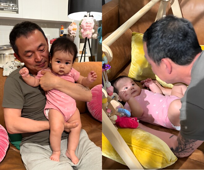 Quốc Trung quickly became infatuated with his granddaughter, frequently sharing photos of their precious moments together. He confessed that spending time with his granddaughter helps him forget all his troubles.