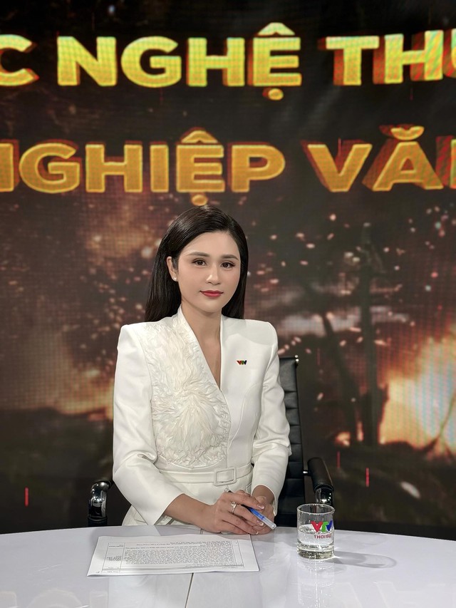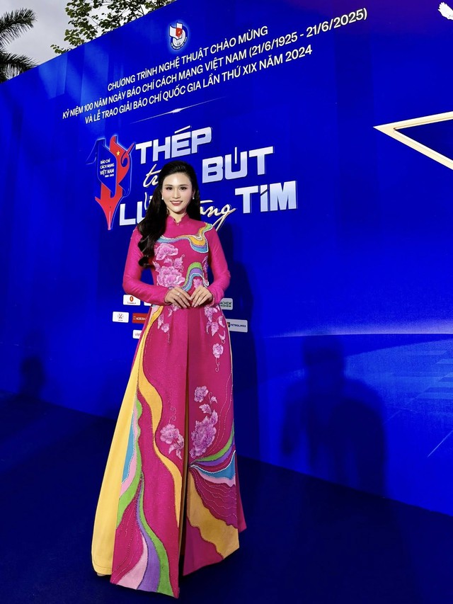 When hosting programs, Broadcaster Minh Trang often opts for elegant ao dai in various colors. Sometimes, she wears ao dai in soft hues adorned with feminine butterfly patterns.
