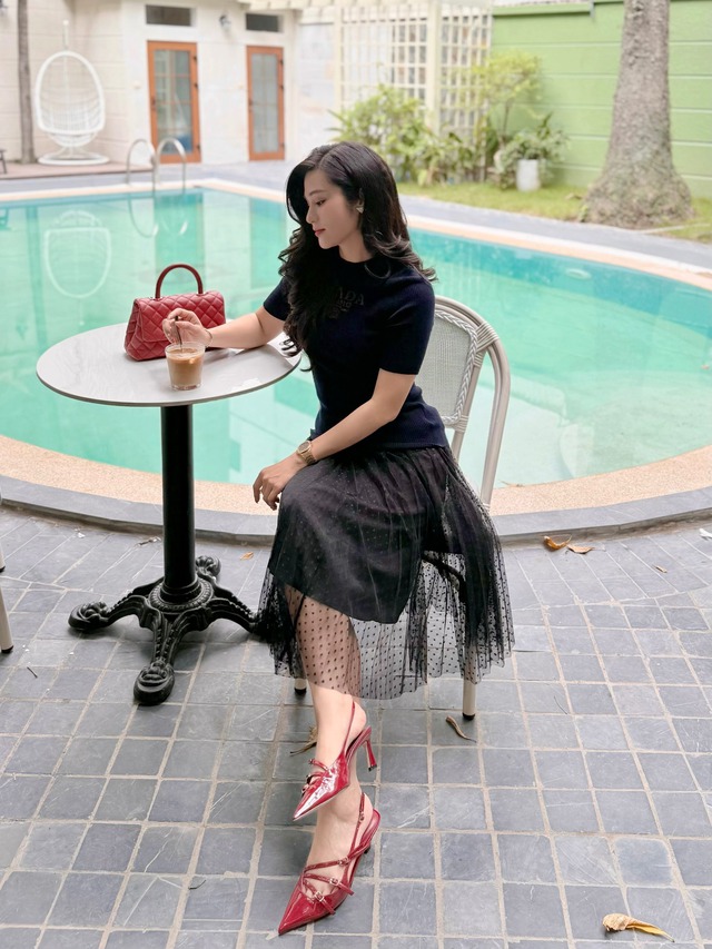 Sometimes, Broadcaster Minh Trang transforms into a poetic muse with a short-sleeved top paired with a stylish gen skirt.