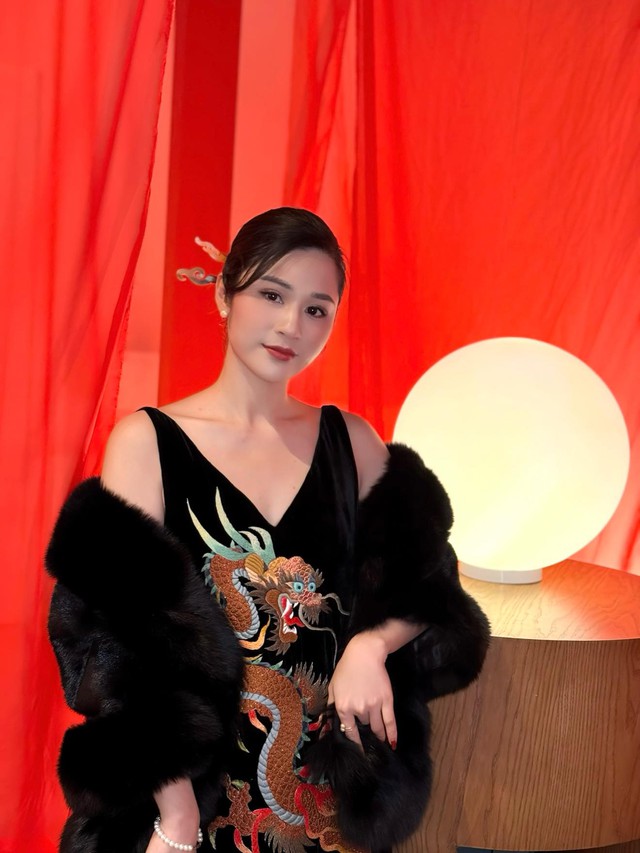 At times, she exudes luxury and sophistication in a velvet dress with dragon embroidery and a fur stole.