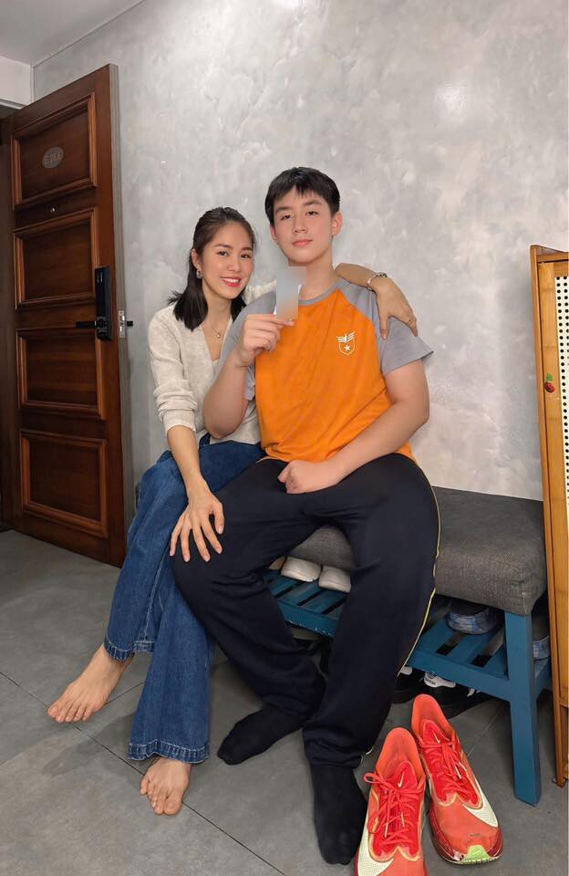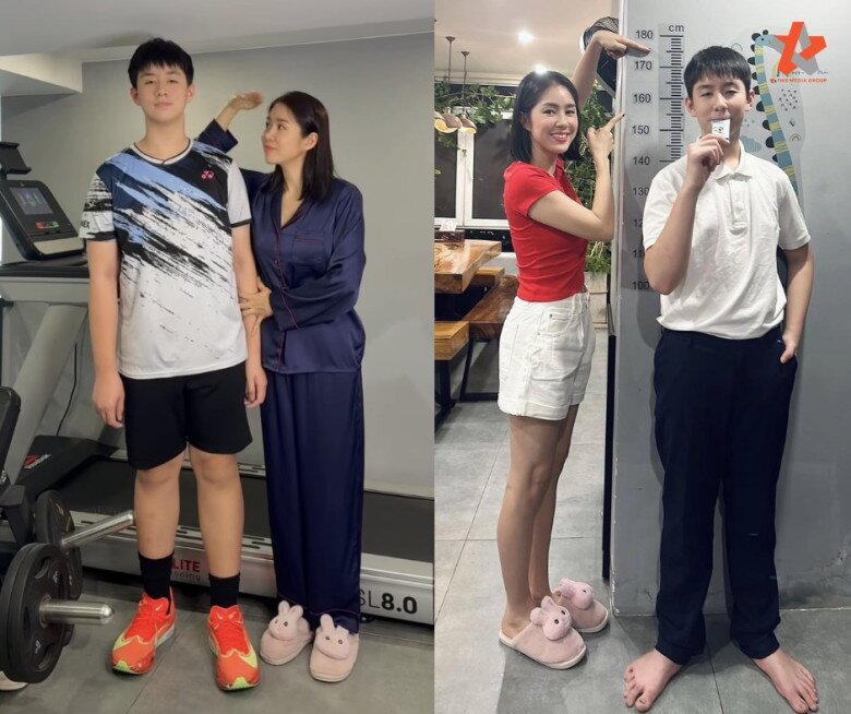 The mother of two shared that Cà Pháo has already surpassed 1.8 meters in height. Many predict that reaching 1.9 meters will be effortless for him in the future.