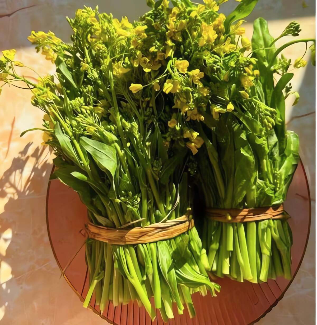This vegetable is incredibly delicious, especially winter mustard greens, which are crisp, sweet, and flavorful. Buy them fresh and tender. The flowering stems are also edible and even crispier and sweeter.