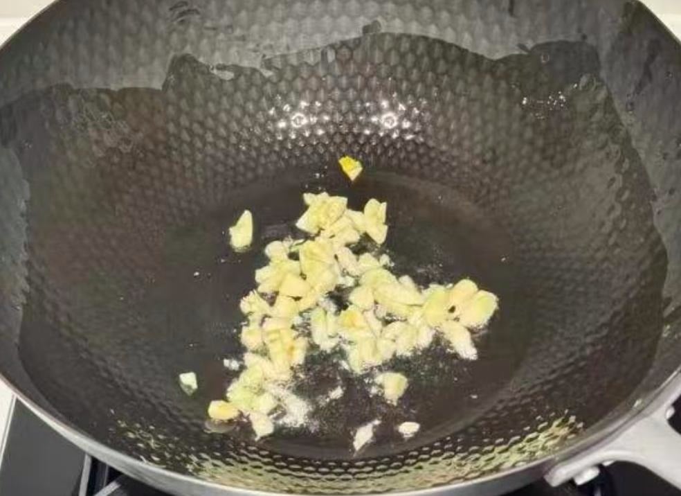Heat oil in a pan, then sauté the garlic until fragrant.