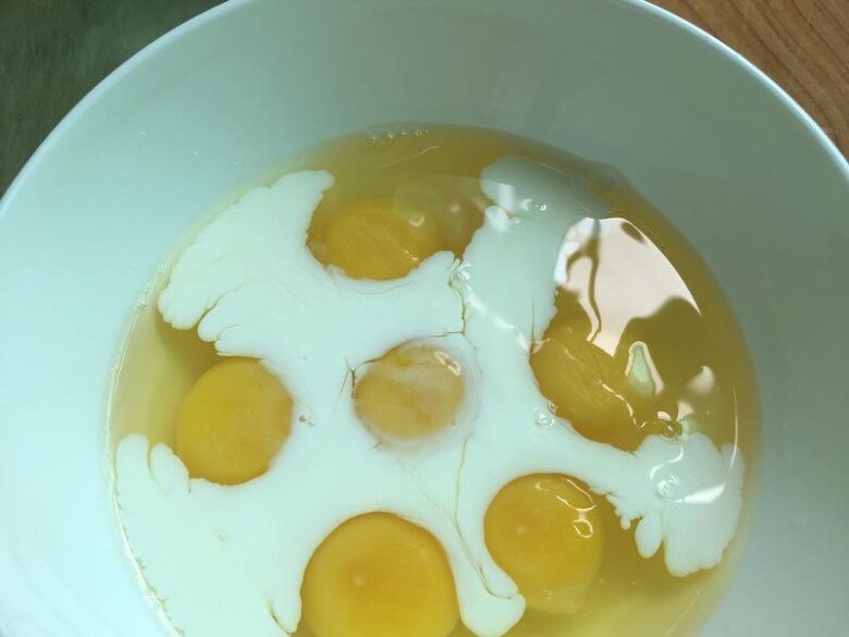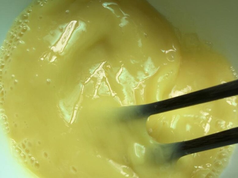 Crack the eggs into a bowl and add a splash of fresh milk for a soft and smooth texture.