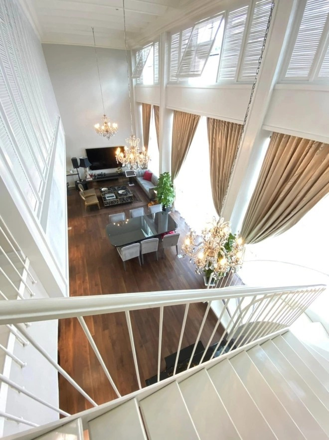 Truong Ngoc Anh’s penthouse spans over 300m², seamlessly connecting two apartments across multiple levels. Photo: FBNV
