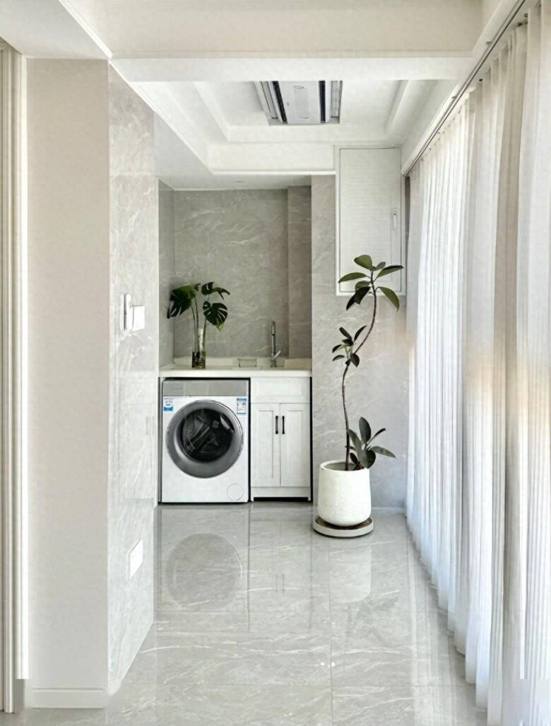 Thus, many prefer the balcony, especially with modern designs featuring utility balconies that are both functional and aesthetically pleasing. With proper planning for waterproofing, drainage, sun protection, insulation, and ventilation, placing the washing machine on the balcony becomes a worry-free choice.