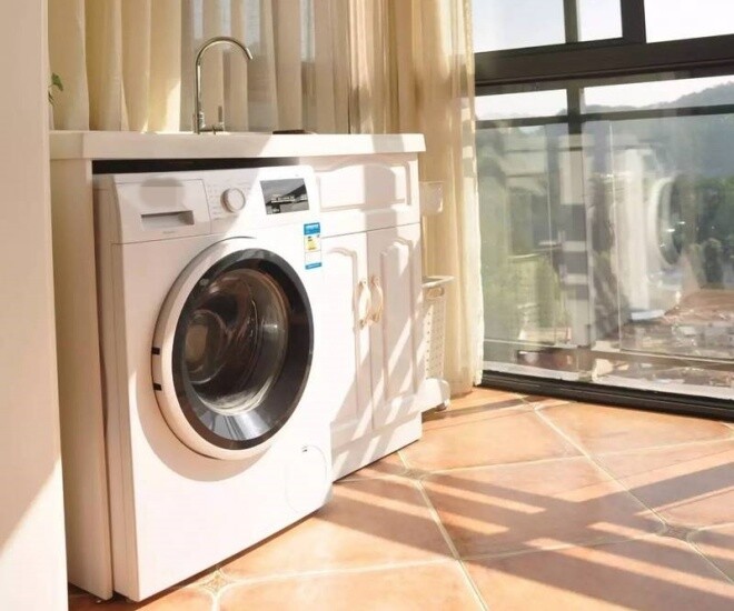 For west-facing balconies, direct sunlight can damage the washing machine over time, causing discoloration or material degradation. Using a sunshade or placing the machine in a closed cabinet is recommended.