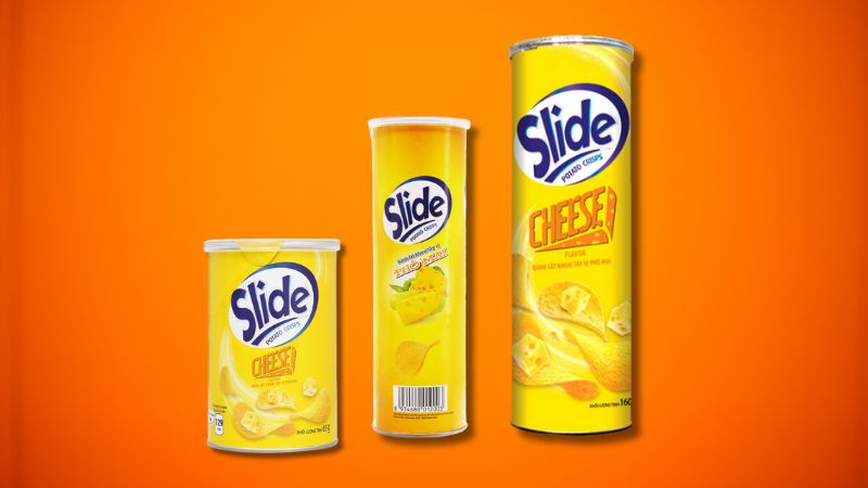 – Slide Cheese-Flavored Potato Snack 90g can costs approximately 34,000 VND/90g can
