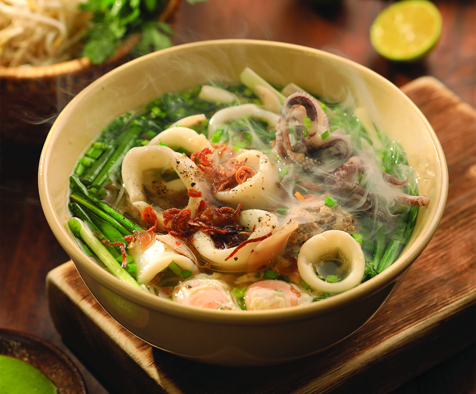 Squid noodle soup is a relatively new addition to Saigon’s renowned noodle dishes but has quickly gained popularity among seafood lovers. It combines the deliciousness of noodles with a squid-based broth and toppings rich in seafood flavors.