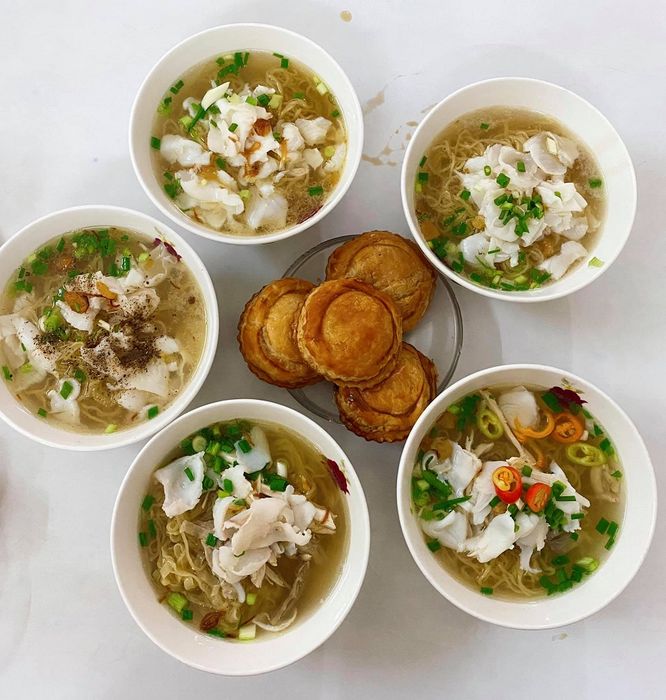 The thick, chewy noodles pair perfectly with thinly sliced fish in a clear, sweet broth that’s light yet flavorful, without being greasy. The broth, made from fish and pork bones, has a cloudy appearance and a mild sweetness, with a subtle hint of tang sai (also known as nậm cabbage). This broth is a favorite among many diners for its balanced taste.