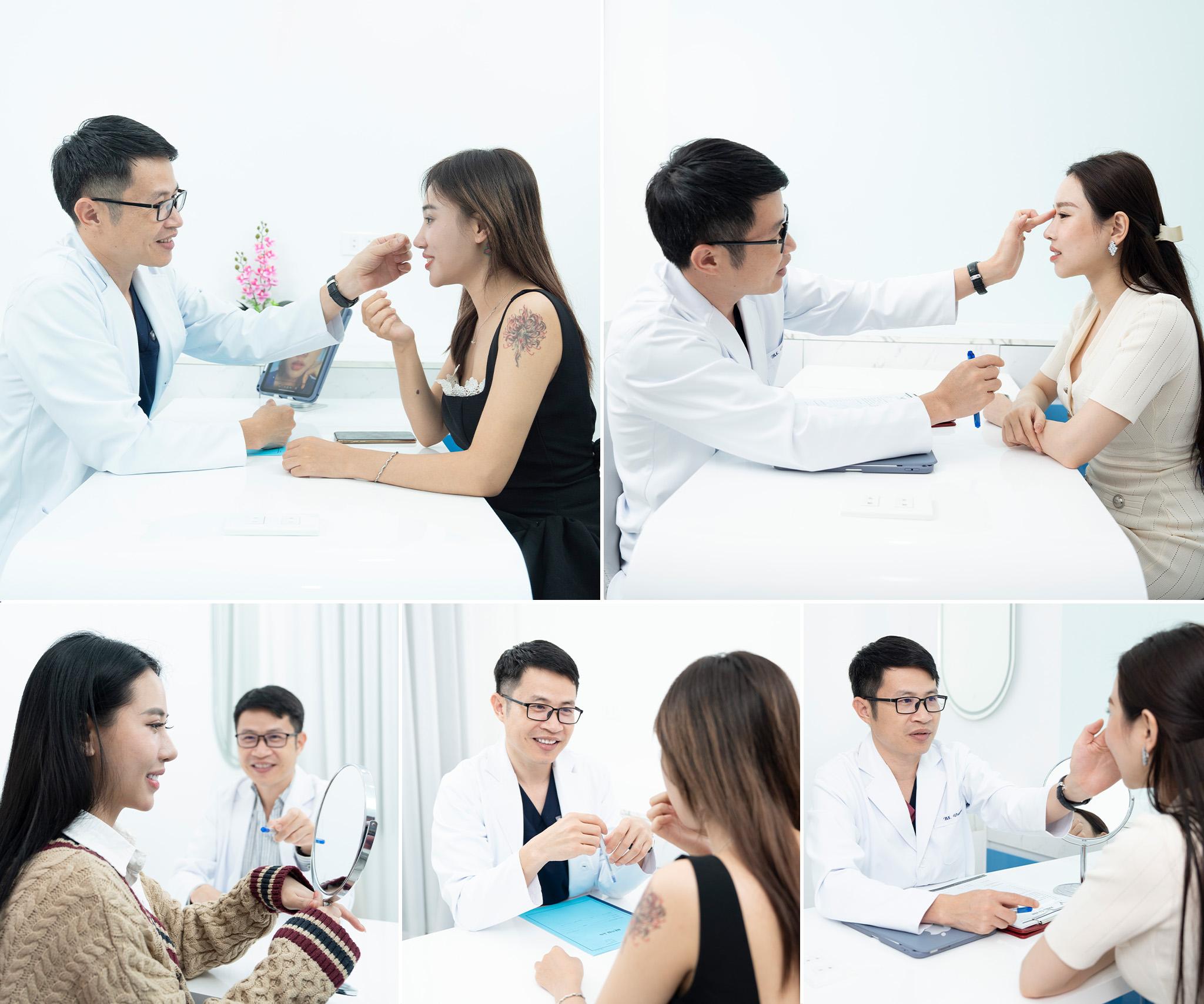 Dr. Vuong thoroughly examines the nose’s current state, assessing the bridge, tip, and cartilage. He analyzes facial proportions and discusses patient desires to recommend a tailored nasal shape, avoiding trend-chasing.