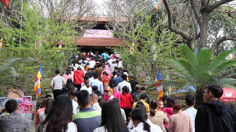Buddha Relic Temple is nestled on the southern slope of Buddha Relic Mountain, in Tien Du District, Bac Ninh Province. The temple is renowned for its Buddha statue, constructed during the Ly Dynasty, and the Peony Flower Viewing Festival. This festival, held in the early days of the new year, features a plethora of engaging activities, attracting numerous visitors.