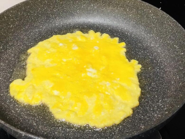 Fry over medium heat until the bottom is lightly golden, then flip and cook the other side for 30 seconds before turning off the heat.