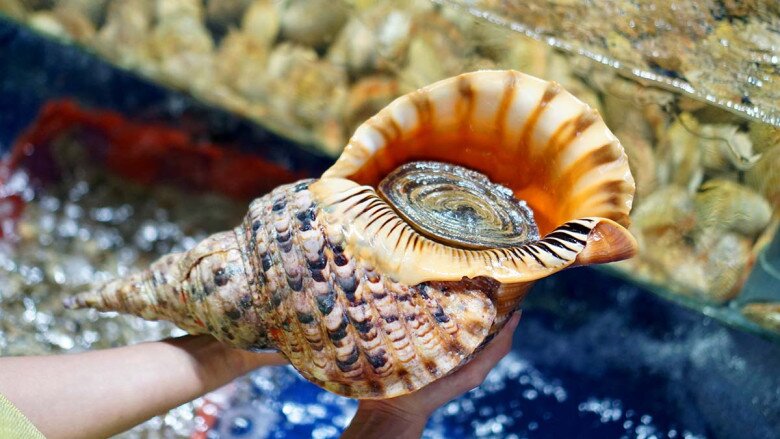 Beyond its culinary value, the Queen Conch boasts significant aesthetic appeal. Its large, evenly spiraled shell, with a pearlescent sheen, is widely used as decor or souvenirs. At Quang Tri souvenir stalls, cleaned and polished shells range from 300,000 to over 1 million VND, depending on size.