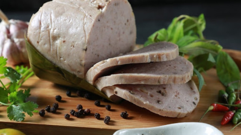 Once prepared, Vietnamese Pork Sausage has a creamy white color with a hint of pale pink. It boasts a tender yet chewy texture, a fragrant aroma, and a sweet, non-dry flavor. It can be enjoyed on its own or used in various dishes, offering diverse and appealing flavors.