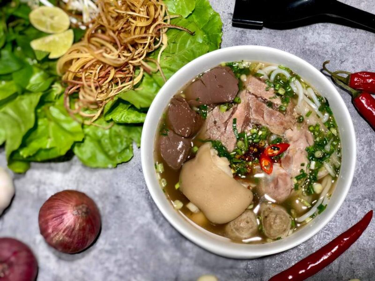 Among these, the Hue beef noodle soup is the most beloved, available in three sizes: regular, full, and special. The broth perfectly balances sweet and tangy flavors, complemented by tender pork blood cubes and crispy pork hocks, creating an irresistible, rich taste.