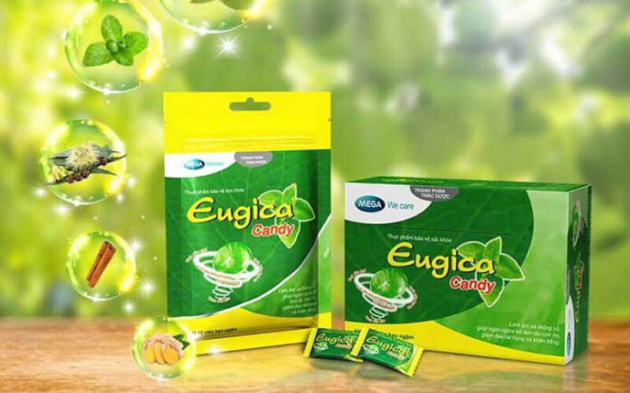 Eugica herbal lozenges are produced by Mega Lifesciences, a Thai company. They are made from natural herbal extracts like eucalyptus, peppermint, ginger, and clove oil, which help soothe the throat.
