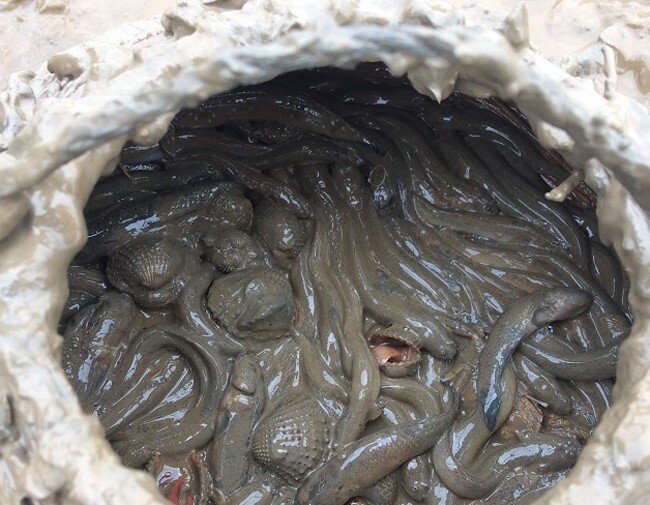 Reaching mudskipper habitats is no easy feat. Locals must trek over 3 km, navigating slippery underwater rocks and wading through mudflats 40–60 cm deep. On scorching days, dehydration and exhaustion are constant threats. Additionally, hidden sharp objects beneath the mud pose injury risks. Thus, mudskipper hunting, while lucrative, demands endurance and perseverance.