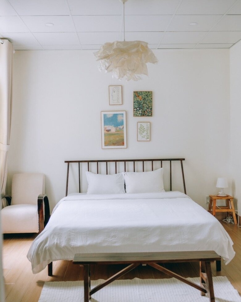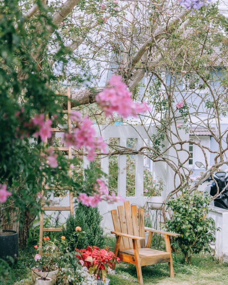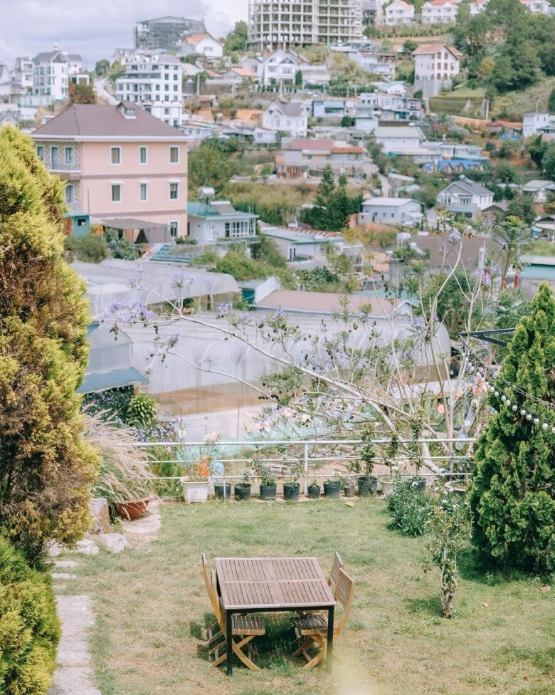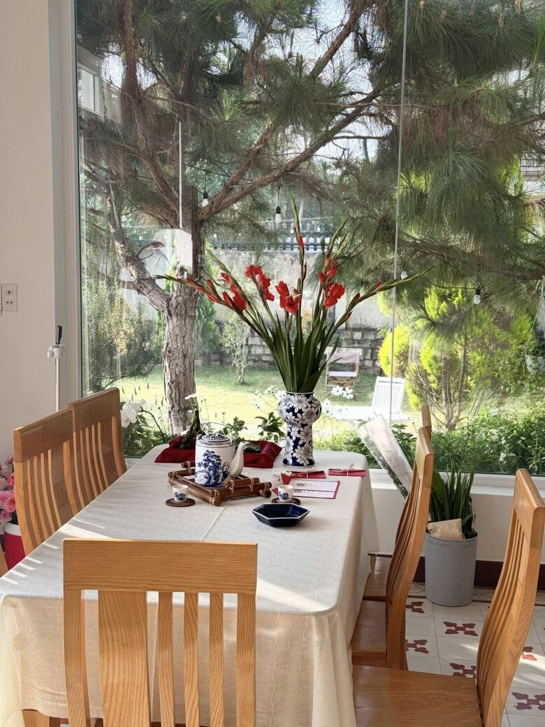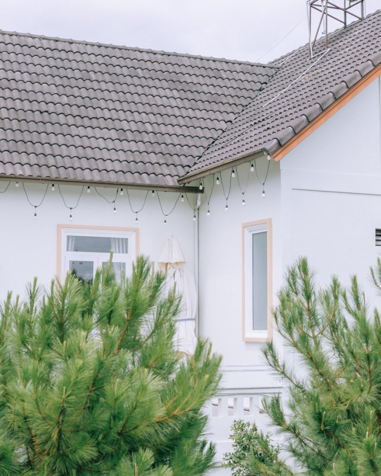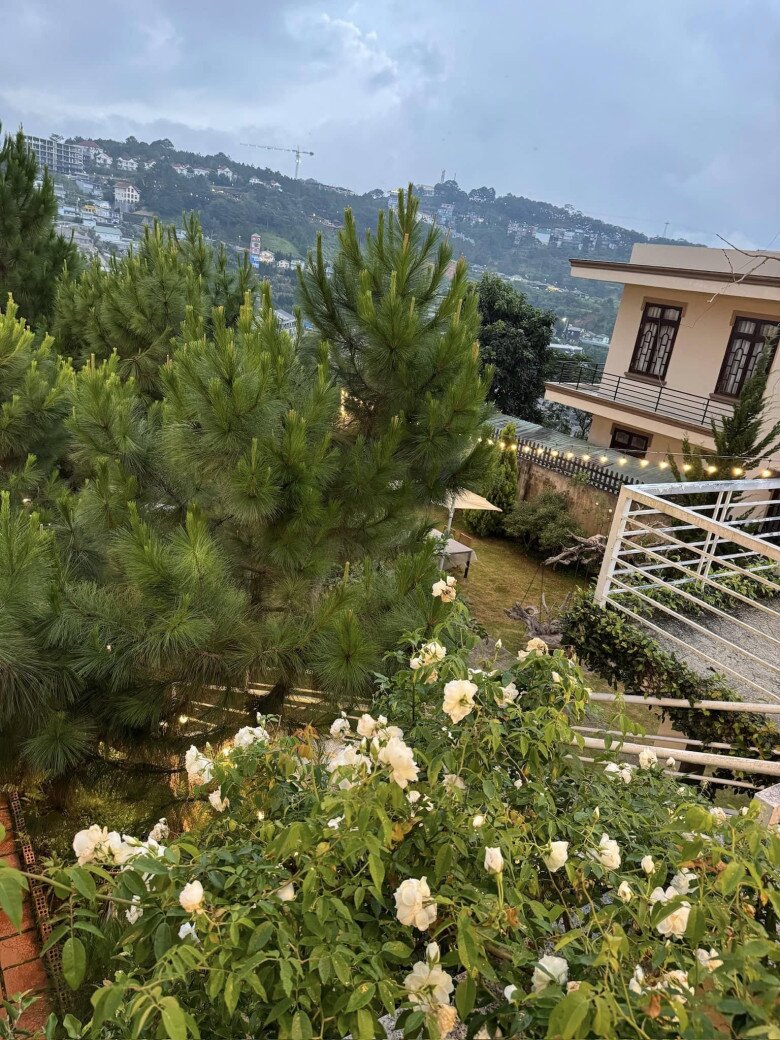 This villa serves as Quỳnh Châu’s ideal retreat after her busy schedule in the city. Painted white with a gray-tiled roof, it’s enveloped by pine trees and softly glowing string lights, embodying Da Lat’s romantic essence.