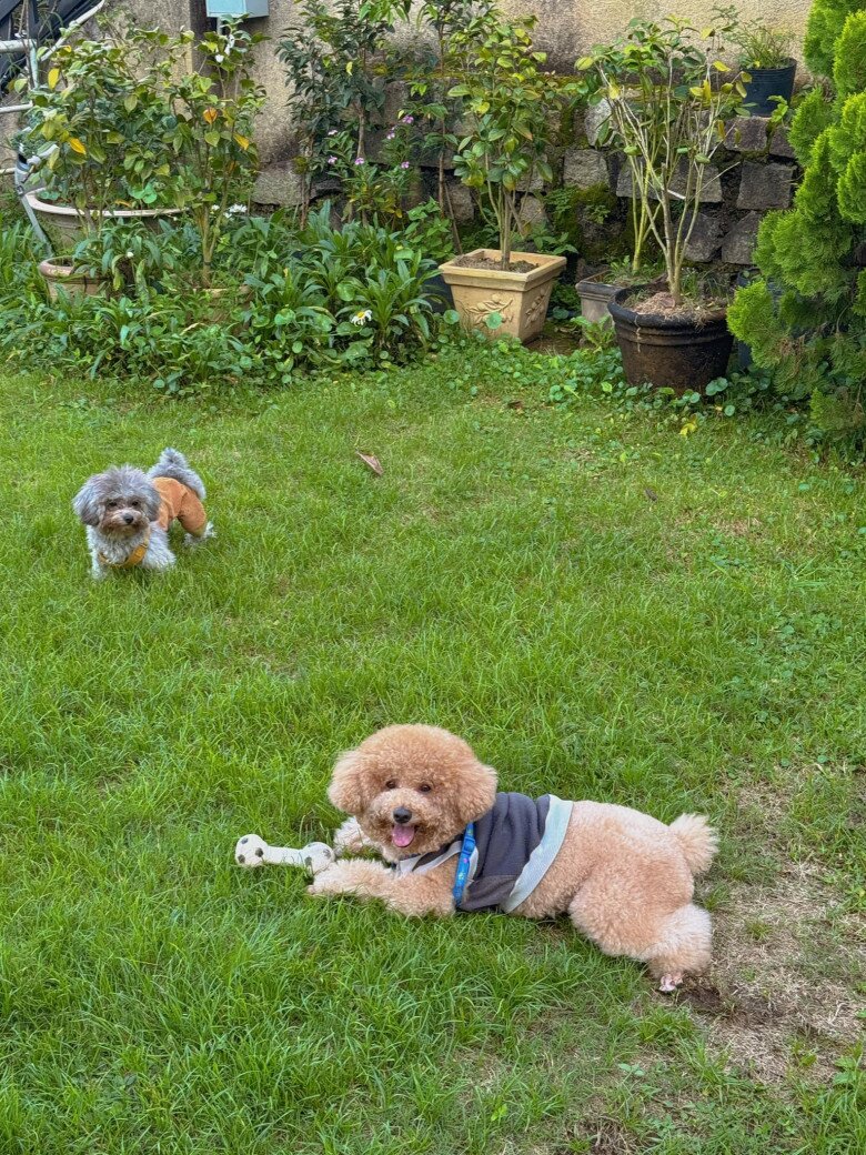The spacious lawn allows Quỳnh Châu’s pets to play freely, creating a pet-friendly environment for both humans and animals.