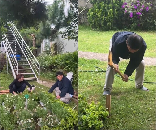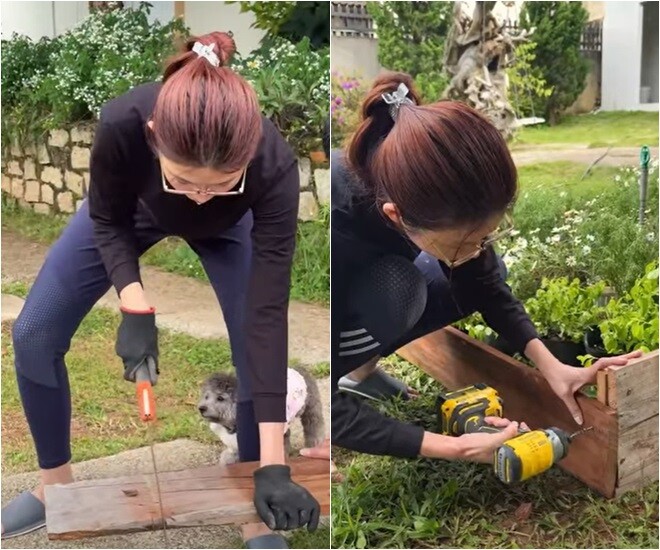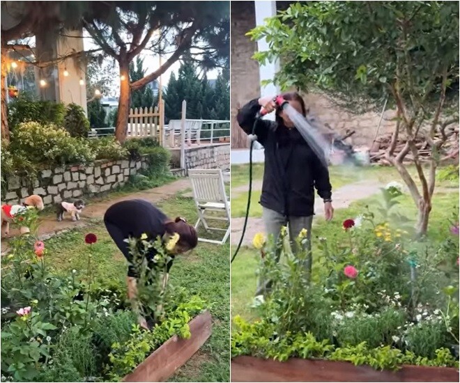 Nestled atop a small hill, the house is surrounded by pine trees, flowers, and lush green lawns, evoking a sense of tranquility and freshness—a quintessential highland retreat. This space eschews ostentation, instead captivating with its simplicity, warmth, and harmony with nature. Not long ago, the beauty queen shared a glimpse of her and her father’s humble garden renovation.